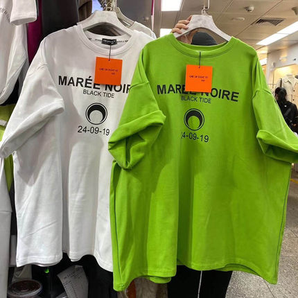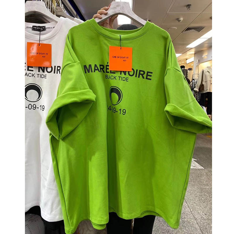 oversize纯棉短袖t恤女宽松大版中长款字母大体欧洲站J绿色半袖潮