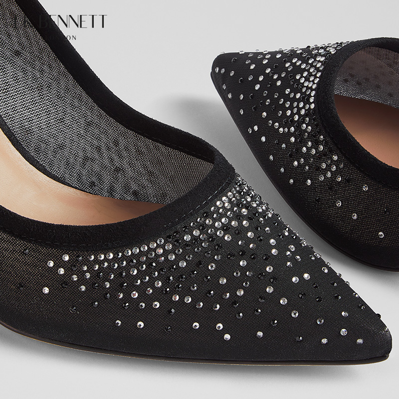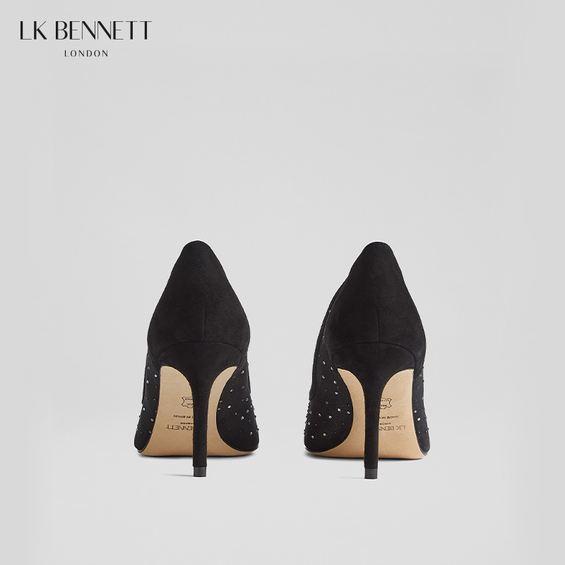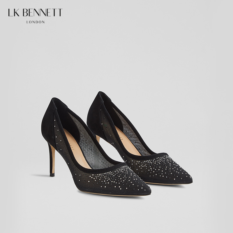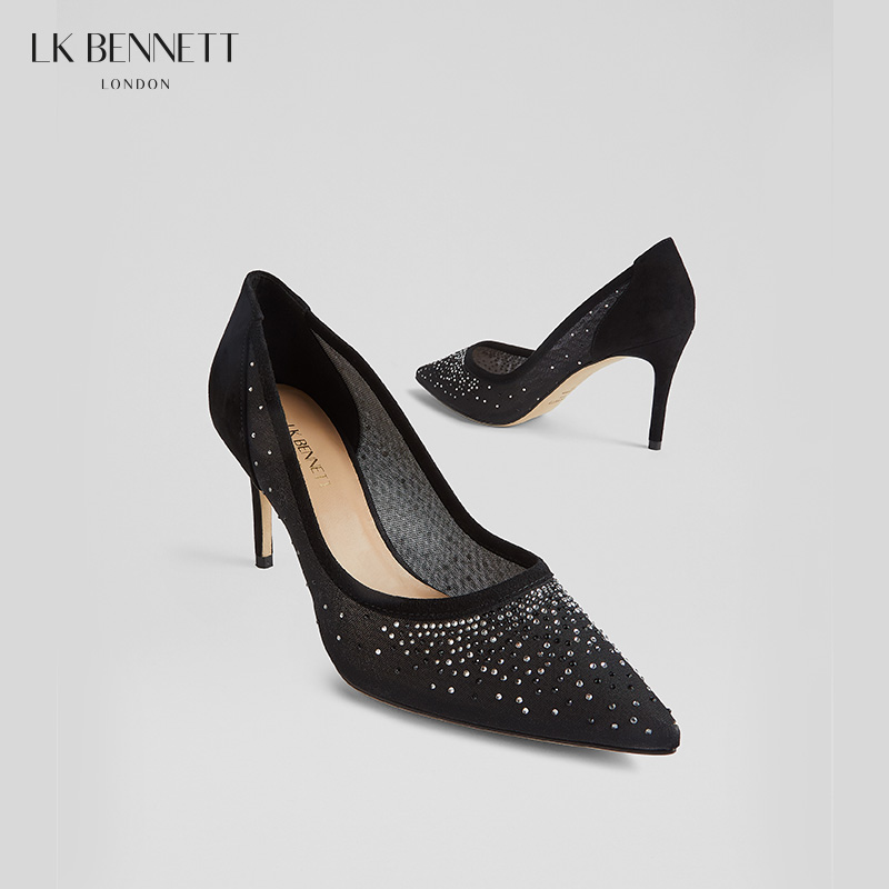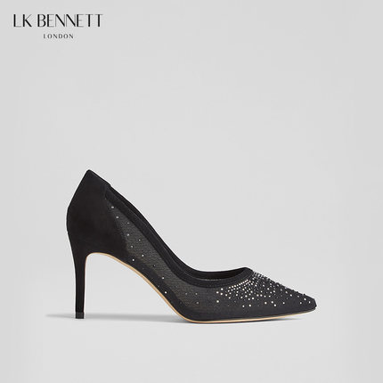 lkbennett黑色网纱拼接尖头高跟鞋女2024新款仙女风8cm细跟单鞋