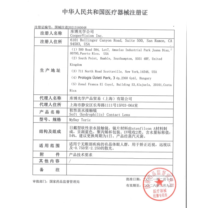 库博光学美怡天散光定制硅水凝胶日抛30片隐形眼镜官方正品D