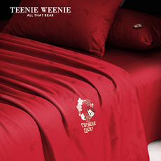 TeenieWeenie小熊刺绣全棉提花婚庆床上用品四件套大红喜庆被套罩