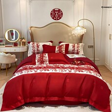 9v7t中式婚庆四件套结婚大红简约喜字被套床单房新婚喜被床上