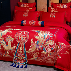 中式龙凤刺绣大红色婚庆s四件套新婚陪嫁结婚六件床单被套床上用