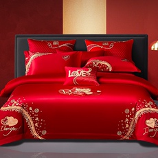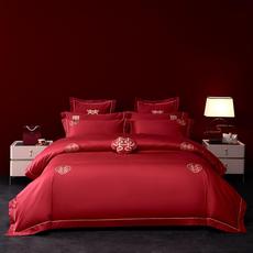 高档婚庆160支长绒棉四件套纯z棉大红色床单刺绣结婚床上用品陪嫁