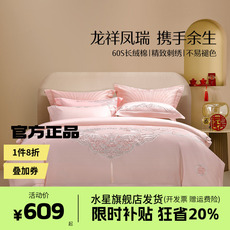 水星家纺婚庆八件套新婚刺绣提花多件套床单被套结婚套件床上用品
