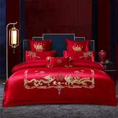 婚庆四件套大红全棉刺绣龙凤结婚房嫁喜被新婚床单笠床品