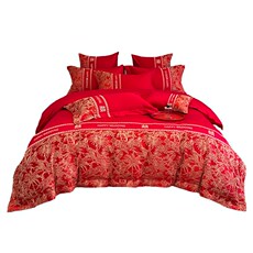 高档大红色婚庆全棉四件套160支纯棉被套100长绒棉被罩结婚床单床