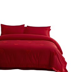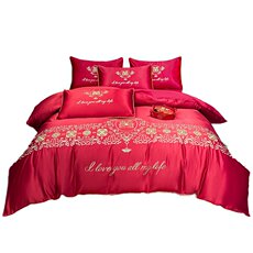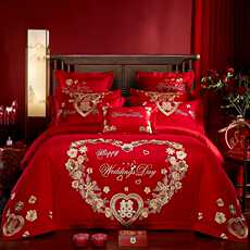 婚庆结婚爱心纯棉100支双w股澳棉刺绣四件套全棉柔软红色床单被罩