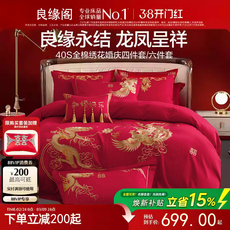 良缘阁婚庆四件套全棉喜庆结婚床上用品纯棉大红床单被套新婚喜被