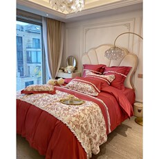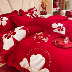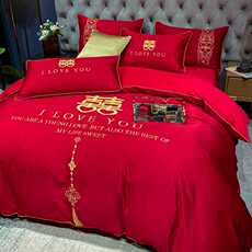 A类大红婚庆长绒棉四件套全棉纯棉被套床单笠轻奢新品床上用品4