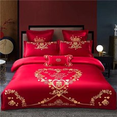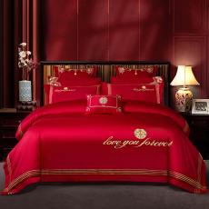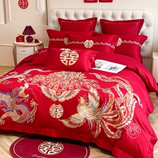 100支长绒棉全棉大红婚庆刺绣结婚喜庆床单被套欧式床品四件套
