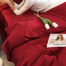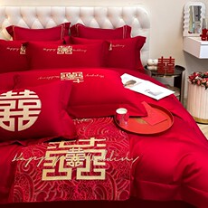 现代婚礼红色高h支全棉四件套高级感结婚庆被套纯棉长绒棉床单床