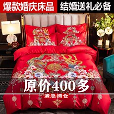 婚庆四件组全棉大红色牀单被套结婚陪嫁套件龙凤新婚牀上用品