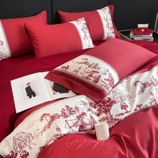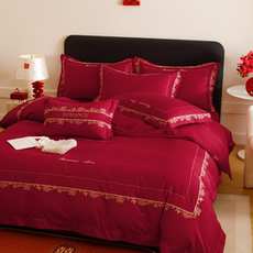 以爱之名/高级感红色100支匹马棉四件套结婚喜庆全W棉被套床单床
