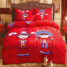 中上式喜结婚字四件套大红色床单玫瑰提花被婚庆婚房套喜被床uSsK