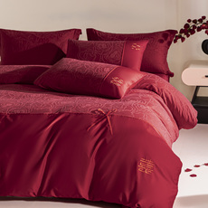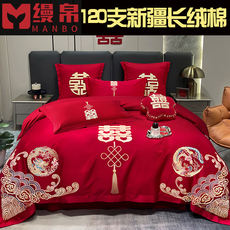 喜庆新中式100S长绒棉全棉四件套红色结婚房被套高端床单1.8床品