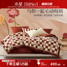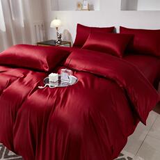 水星家纺60S新疆长绒棉婚庆四件套喜庆红色轻奢套件床单被套
