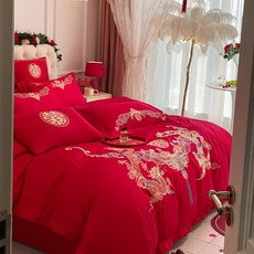 新中式龙凤刺绣160支婚庆四件套大红色喜被床单结婚床上用品4
