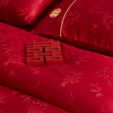 新中式竹子提花婚庆四件套红色被套新婚床单喜被结婚床上用品婚嫁