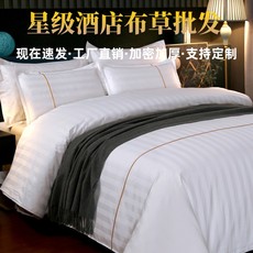 酒店床上用品四件套白色全棉床单缎条简约宾M馆专用民宿床笠三件