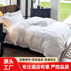 纯白贡缎全四棉贡缎套件酒店布草宾上馆民棉宿床单被枕套纯酒店件