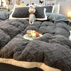 双面绒床品保暖被套公寓床单三件套四件套牛奶塔芙加厚绒深灰色绒