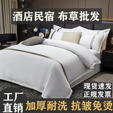 酒店宾馆民宿布草全棉四件套白色被套床单枕套医院三件套床酒店品