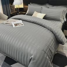 酒店缎条四件套纯棉白色条纹床单被套酒店床上四件套宾馆民宿布草