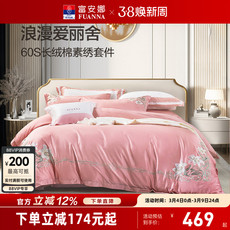 富安娜120支长绒棉四件套纯棉全棉床单被套轻奢A类裸睡床品套件