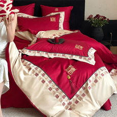 新款西式外贸婚庆刺绣四件套全棉结婚纯棉绣花被罩床单床上大红