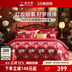 富安娜结婚四件套婚庆红色纯棉床上用品喜庆床单婚嫁喜被新婚被套