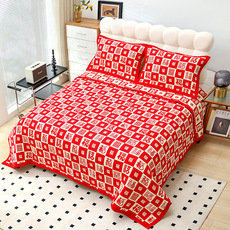 南通家纺百福图结婚四件套红色纯棉全棉送婆婆被套婚庆床单床笠款