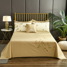 外贸尾单纯棉刺绣床单双人全棉斜纹棉绣花睡单枕套特价清仓处理