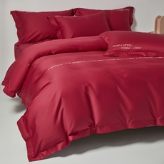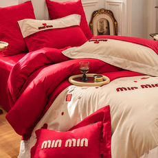 新款简约时尚婚庆四件套大红色刺绣被套床单1.8m喜被结婚床上