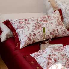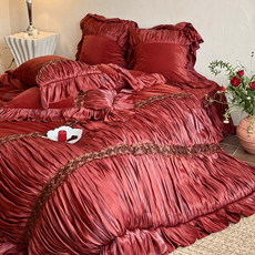 法式荷叶边复古婚庆四件套结婚高级全棉100S红色玫瑰提花被套床单