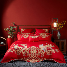 高端全棉婚庆四件套大红色绣花被套床单婚房纯棉喜庆结婚床上用品