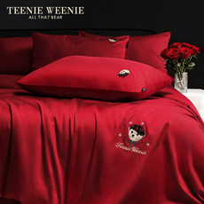 LANSWAY心相印韩风牛奶绒婚庆四件套冬季保暖红色结婚被套床单盖