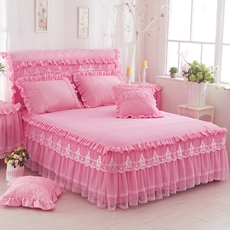 三保家纺时尚新款床裙式床罩花边床单加厚天丝棉公主风1.8m床单件