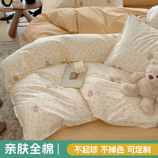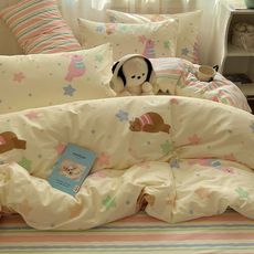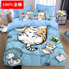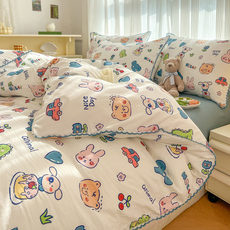 纯棉印花加厚保暖小熊汽车卡通床单双人被套三四件套儿童床品睡单