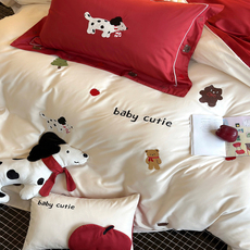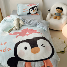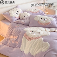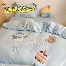 无印良品卡通牛奶绒毛巾绣四件套床品儿童被套床单冬季床上三件套