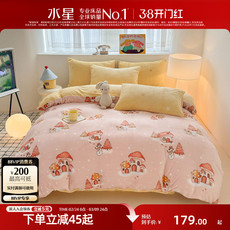 水星家纺全棉磨毛三/四件套抗菌套件儿童学生卡通可爱纯棉床品