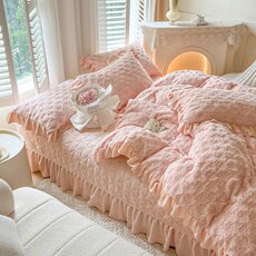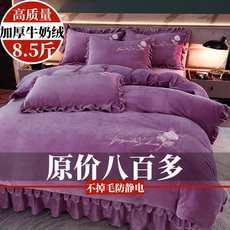 冬季加厚牛奶绒床裙四件套双面法兰绒加绒被套床单珊瑚绒床上冬天
