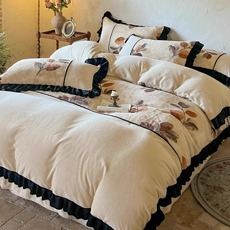 韩系少女蝴蝶结毛巾绣牛奶绒四件套冬季加厚珊瑚法兰绒被套三件套