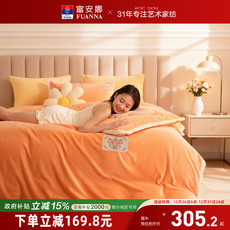 富安娜牛奶绒四件套床上被套法兰绒床单珊瑚绒毛绒冬季加厚加绒