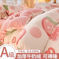 红豆冬季牛奶绒床上四件套2025新款珊瑚绒法兰绒双面加厚床单被套