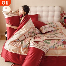馨荷婚庆四件套100S长绒棉纯棉喜字被套红色结婚陪嫁喜被床上用品