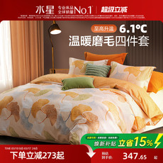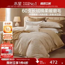 水星家纺全棉磨毛四件套纯棉抗菌套件吸湿发热被子套床单床上用品