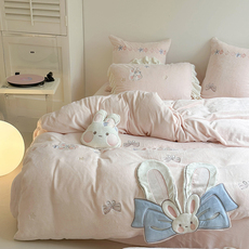 冬季少女心粉色豹纹加厚兔兔绒四件套珊瑚绒被套牛奶绒床单笠床品