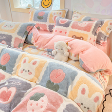 冬季轻奢兔兔绒加绒加厚床上四件套双面毛绒被套珊瑚绒牛奶绒床单