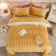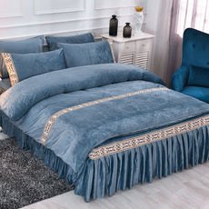 加厚牛奶绒四件套床裙款金貂绒双面冬季珊瑚绒被套三件套床上用品