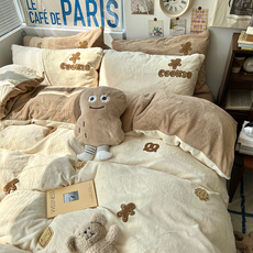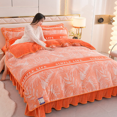冬天加绒牛奶绒四件套保暖新款冬季加厚法兰珊瑚绒被套床裙妈妈款
